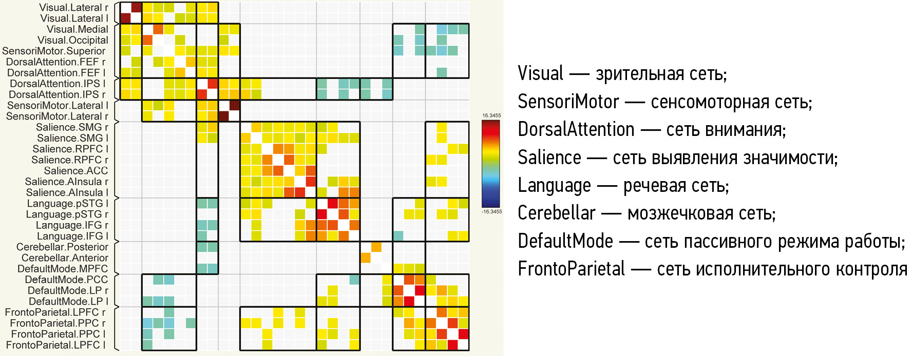 Рис. 1. Матрица коннективности при использовании метода многомерной параметрической статистики на основе функциональной сетевой коннективности (FCN)
