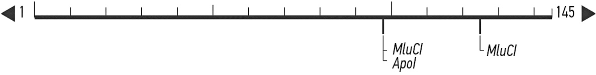 Рис. 1. Места разреза ApoI и MluCI ампликона 145 bp (https://nc3.neb.com/NEBcutter/prj/PFCRT_K76T)