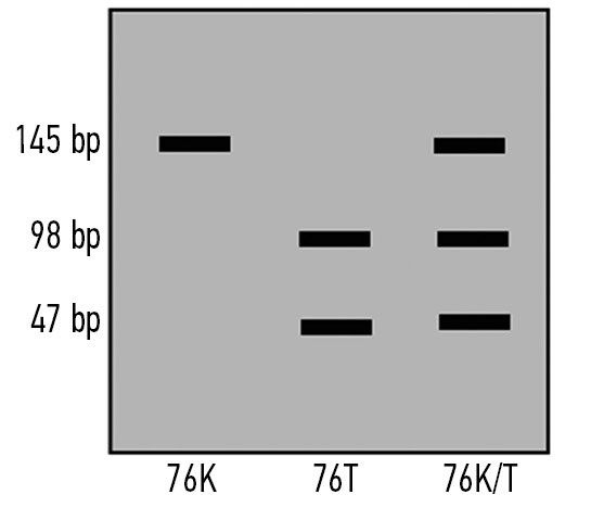 Fig. 8. PCR-RFLP cleavage of fragment 76 using ApoI