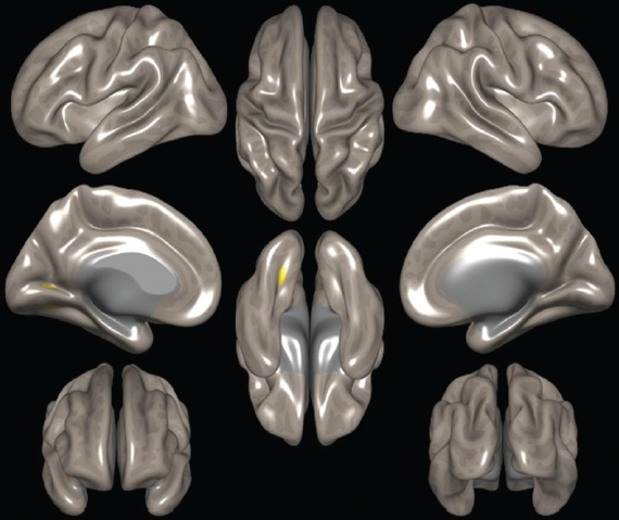 1 | +06, +58, +22 | 371 | 0.000000 | 0.000000 | 0.000000 | 0.006336 | 0.000000 | Right frontal lobe, left frontal lobe, left superior frontal gyrus, right superior frontal gyrus, left paracingulate gyrus, right paracingulate gyrus |