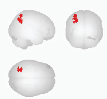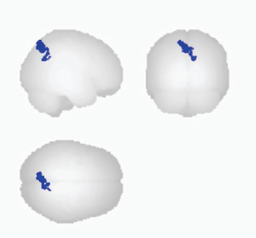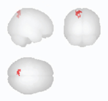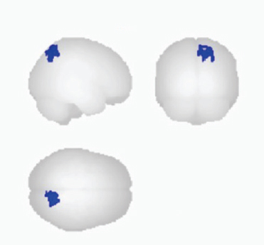 Рис. 2. Кластер ослабления коннективности, локализованный в предклинье