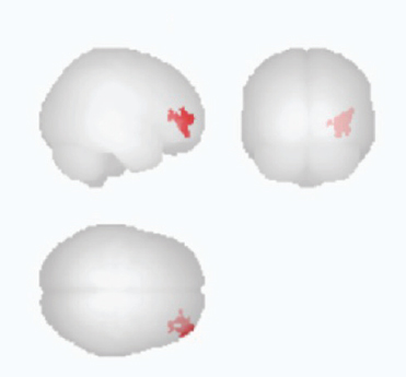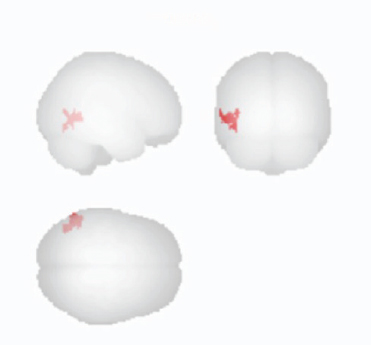 Рис. 1. Кластер ослабления коннективности, локализованный в правой затылочной доле