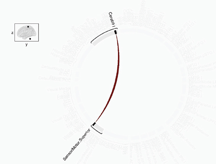 Сила функциональной коннективности отображалась с помощью преобразованных по Фишеру двумерных коэффициентов корреляции из взвешенной общей линейной модели, определяемой индивидуально для каждой пары начальных и целевых областей, с последующим моделированием их связи на сериях данных BOLD.