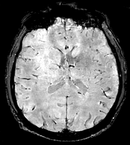 Fig. 5. MRI of the brain in SWI/SWAN mode of a patient with a concussion. No diffuse microbleeds were detected