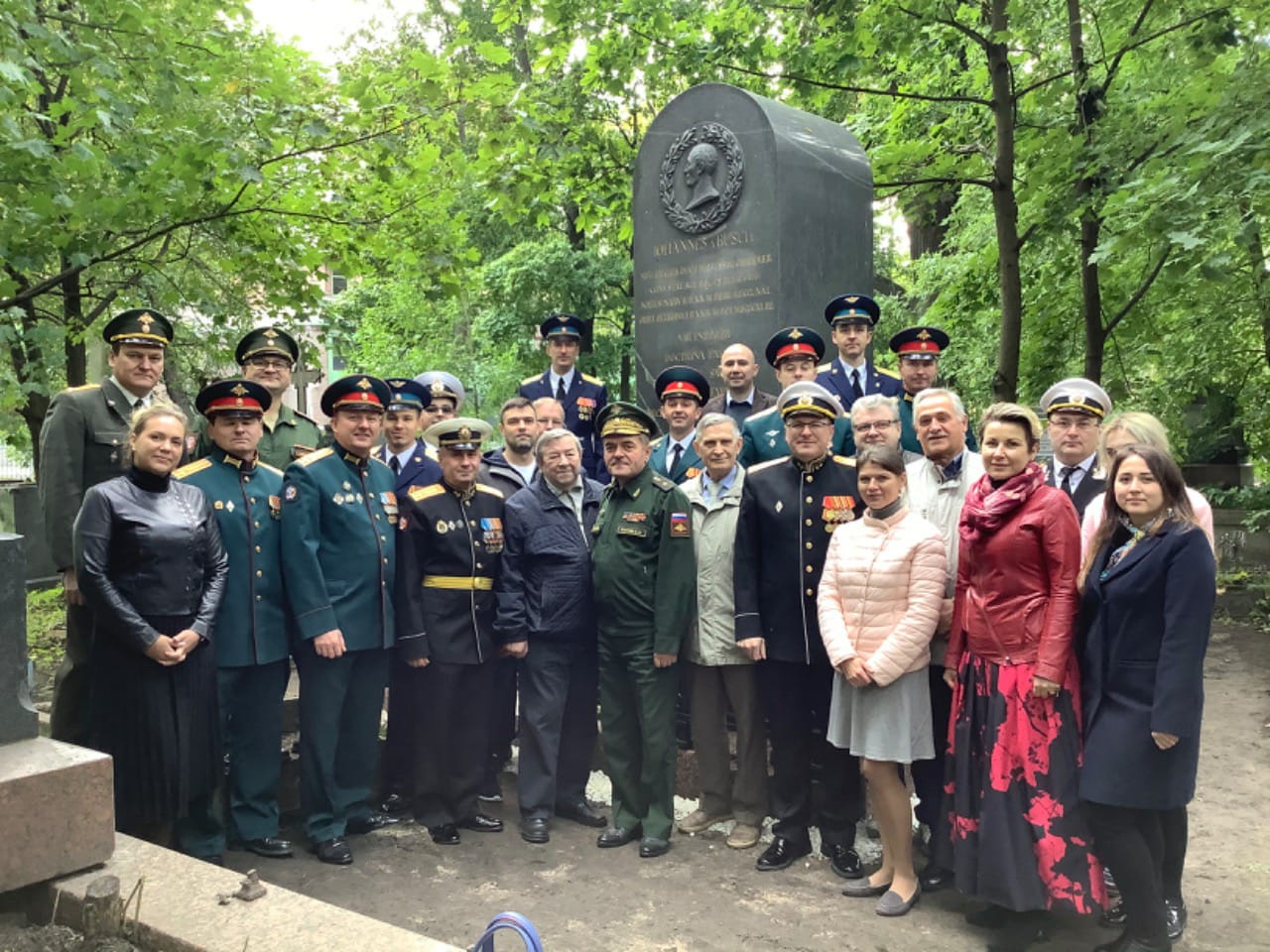 Рис. 3. Участники торжественного собрания у могилы профессора И. Ф. Буша в день 220-летия образования кафедры общей хирургии (сентябрь 2020 г.)