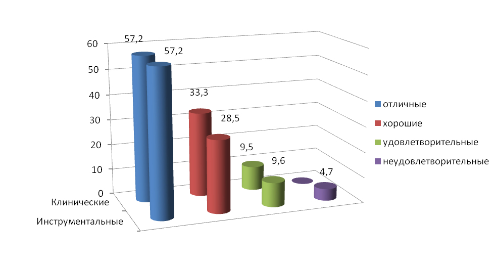 Рис. 3. Отдаленные результаты лечения по данным клинического и инструментального обследования
