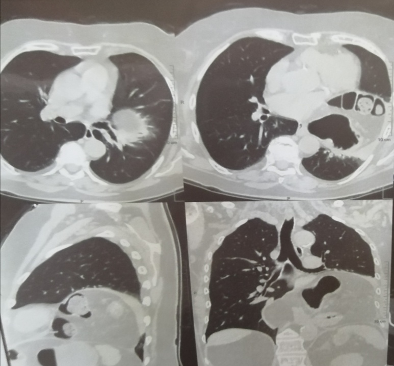 Рис. 5. КТ-признаки гигантской грыжи пищеводного отверстия диафрагмы