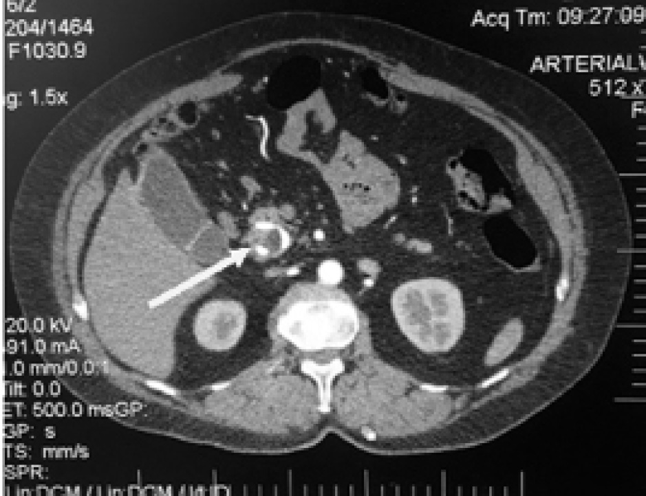 Клинический случай. Больная Б., 61 г. В 2009 г. при плановом обследовании у больной выявлены признаки хронического калькулезного холецистита. Рекомендована плановая холецистэктомия. В 2012 г. больная с приступом механической желтухи на фоне холедохолитиаза госпитализирована в ГБ № 17 г. Санкт-Петербурга. В срочном порядке пациентке выполнены супрапапиллярная сфинктеротомия, литоэкстракция и санация холедоха.