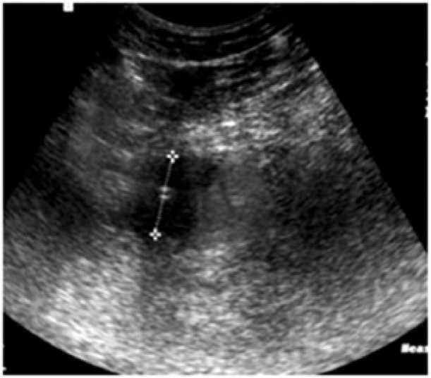 Рис. 8. Ультрасонограмма. Отграниченное жидкостное скопление в области ПЕА