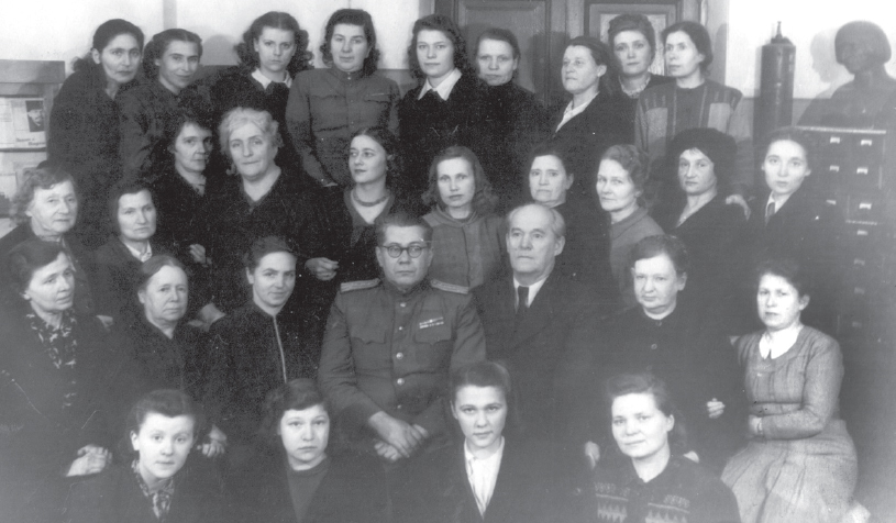 Рис. 13. Коллектив библиотеки ВМедА в 1949 г. Н.Н. Холодковская во втором ряду справа