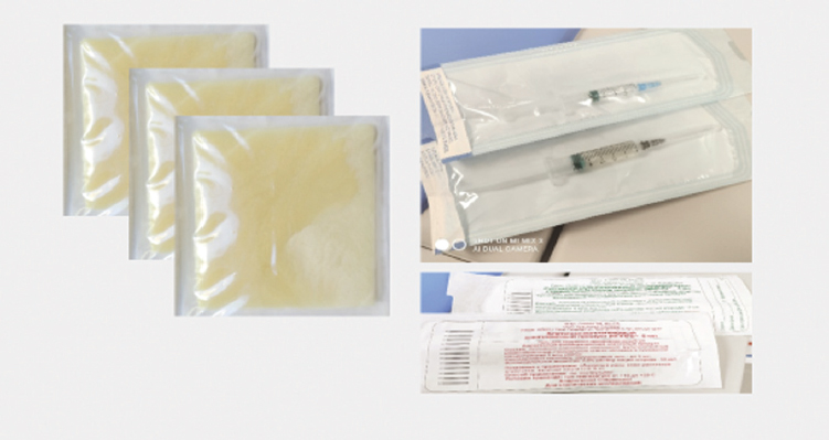 Рис. 3. Биоразлагаемая гемостатическая субстанция (ВМедА, ГосНИИИ ВМ, ВИТ «ЭРА») (А) и гидрогель из бесклеточного матрикса пуповины человека (ВМедА, ГосНИИИ ВМ, ООО «Клеточные системы», ВИТ «ЭРА»)
