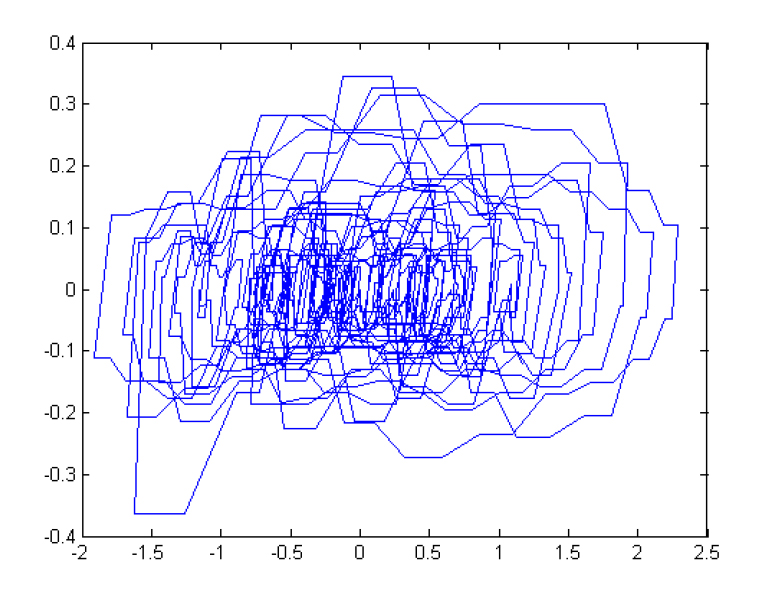Рисунок 2 – Фазовая траектория случайного процесса – реализации кривой Эль-Ниньо в интервале времени (1950–2015 гг.) (по абсциссе) и (по ординате)