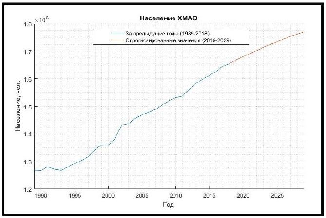 Замечание. Спрогнозированные значения численности населения ХМАО-Югры в будущем будут близки к реальным при сохранении текущих тенденций развития округа.