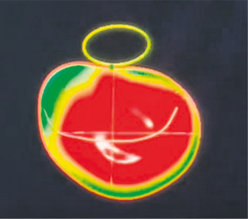 Fig. 7. Dynamic cine imaging along the short axis of the left ventricle. End-systolic frame shows thickening of basal myocardial segments