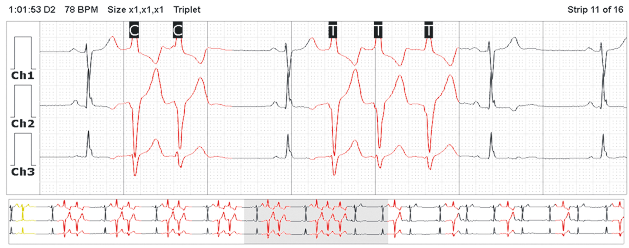 Fig. 9. Fragment of multi-day electrocardiographic monitoring