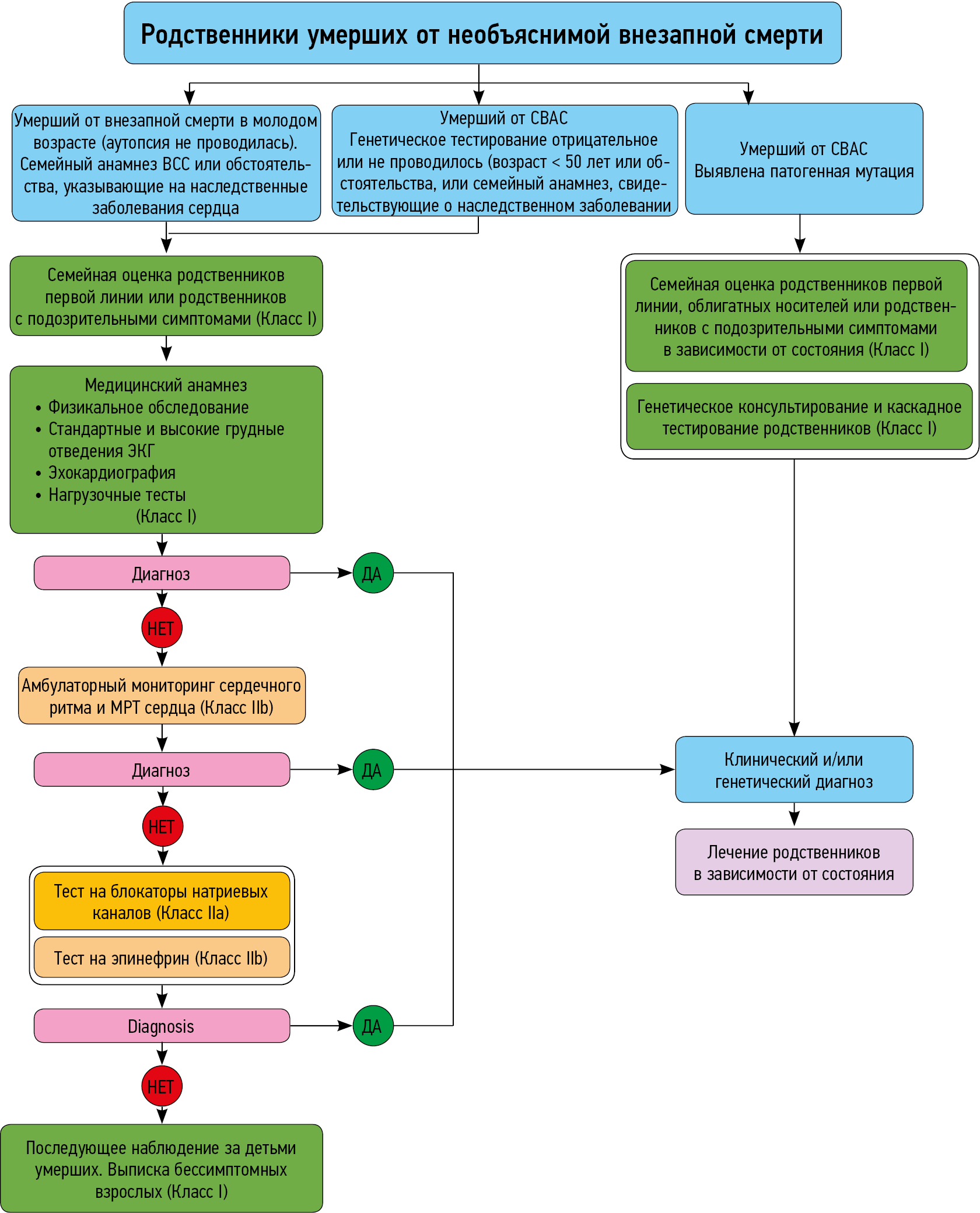 - Kumar S., Peters S., Thompson T., et al. Familial cardiological and targeted genetic evaluation: low yield in sudden unexplained death and high yield in unex-plained cardiac arrest syndromes // Heart Rhythm. 2013. Vol. 10, No. 11. P. 1653–1660. doi: 10.1016/j.hrthm.2013.08.022