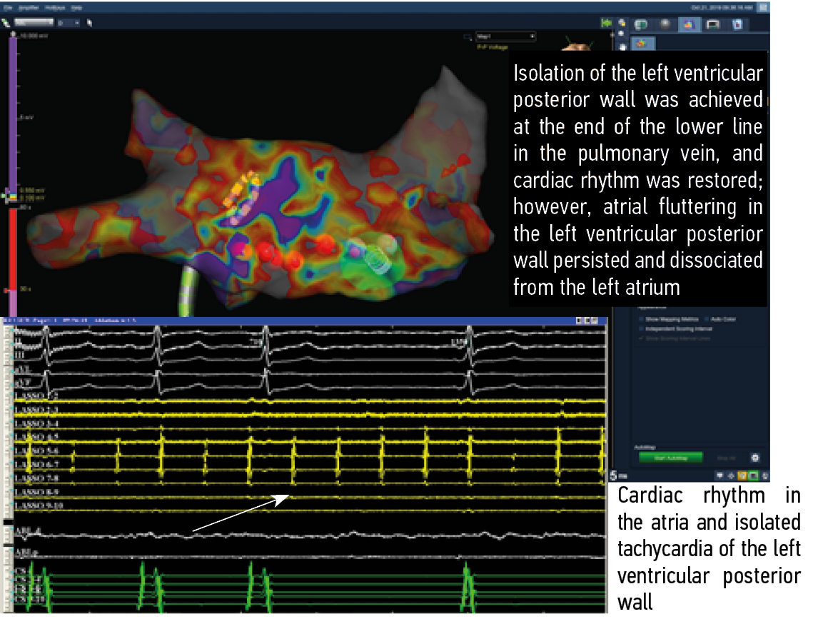 При наличии прорывов проведения в легочных венах или задней стенке ЛП выполнялась радиочастотная (РЧ) реизоляция с контролем отсутствия проведения (контроль в процессе высокочастотных (ВЧ) воздействий и повторно в конце процедуры на тахиаритмии и после ЭИТ).