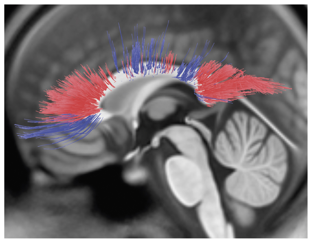 В работе M. Jung и соавт. [13] на выборке из 72 добровольцев были продемонстрированы наибольшие значения фракционной анизотропии (FA) у мужчин в проводящих путях: левом переднем таламо-корковом, правом поясно-угловом, правом пирамидном, височном окончании верхнего продольного с двух сторон, крючковидном с двух сторон и малых щипцах мозолистого тела. В то же время у женщин наблюдалось преобладание радиальной диффузивности (RD) в проводящих путях: левом переднем, таламо-корковом и левом крючковидном. Показатель радиальной диффузивности (RD) является одним из показателей диффузионной тензорной томографии, одним из первых методов трактографии, к которой также относится показатель фракционной анизотропии (FA), ввиду чего RD также подвержен «частичному усреднению».
