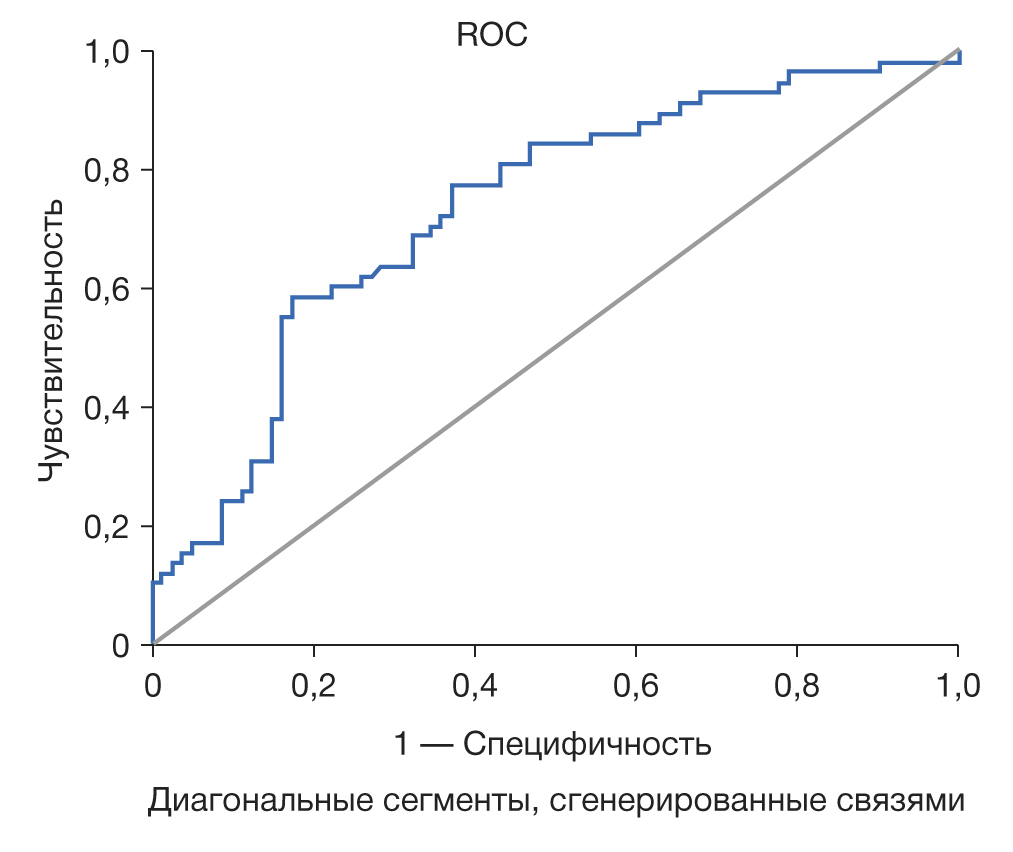 Проведенный ROC-анализ выявил значения VO2 пик, выше которого наличие СН у пациента маловероятно. В нашем исследовании это значение равно 20 мл/кг в минуту. Подобные данные были получены нашими зарубежными коллегами [5, 8].