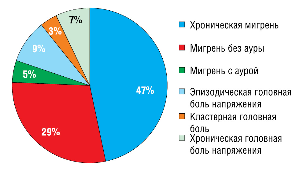 В последнее время имеется тенденция к профилизации медицинской помощи: открываются специализированные центры и кабинеты по лечению головной боли, в условиях которых возможно организовать мультимодальный подход к лечению. Примером может служить Клиника головной боли и вегетативных расстройств им. академика Александра Вейна — первая специализированная клиника в нашей стране, которая функционирует с 1999 года. Структура первичных головных болей в 2018 г. приведена на рис. 1. Бό́льшая часть медицинского персонала клиники является научными сотрудниками различных кафедр и подразделений медицинских вузов столицы. Спецификой данного учреждения является тесная связь научно-исследовательской работы и клинической практики. Систематически, один раз в неделю, проводятся клинические разборы наиболее сложных неврологических больных главным врачом клиники совместно с различными специалистами, а также научные конференции.