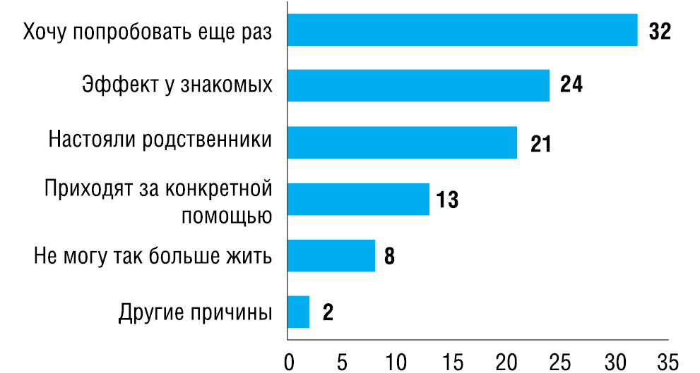 Сотрудники клиники консультируют больных из различных регионов России, всего постсоветского пространства, из-за рубежа. Пациенты обращаются в клинику по направлению специалистов и самостоятельно для уточнения диагноза и выработки тактики лечения. Причины обращения за помощью в Клинику головной боли и вегетативных расстройств им. академика Александра Вейна приведены на рис. 2.
