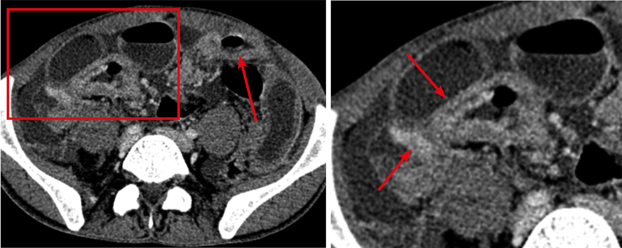 Цель — раскрытие возможностей компьютерной томографии с применением внутривенного болюсного контрастного усиления в выявлении симптома «утолщения стенки» тонкой кишки и ее прогностической значимости при различных нозологиях.