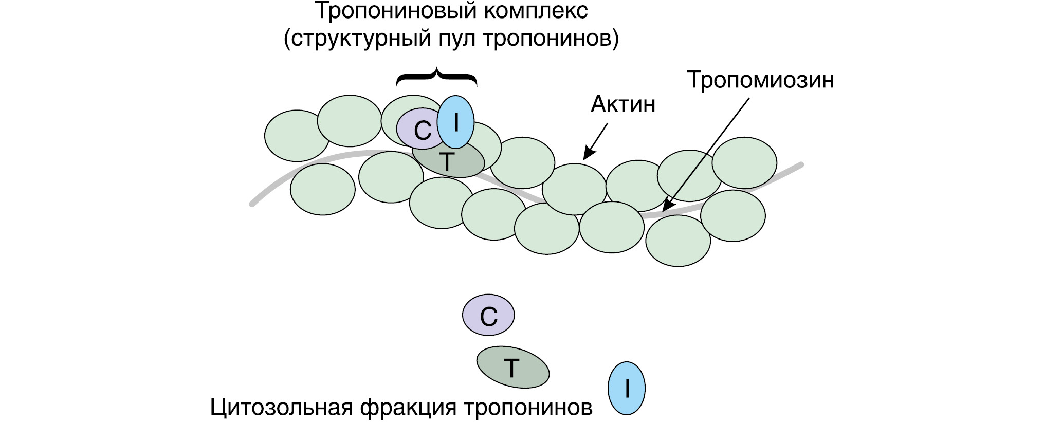 Рис. 1. Схема расположения тропонинов в кардиомиоците