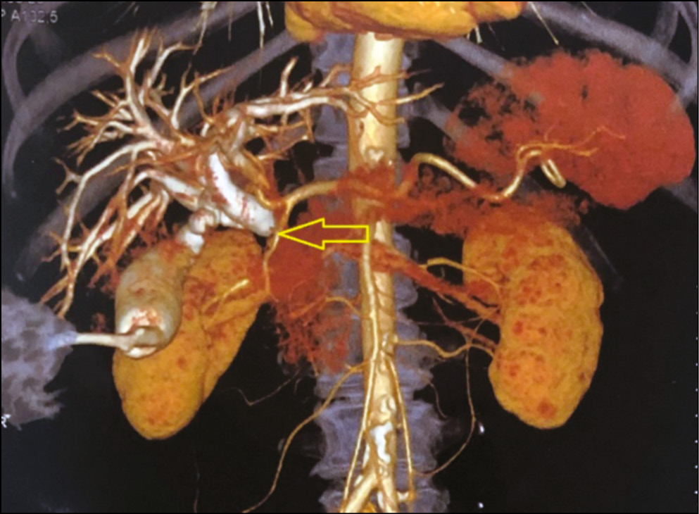 3. Fig. 2. Multispiral computed tomography with contrast: distal block of the biliary tract (arrow).