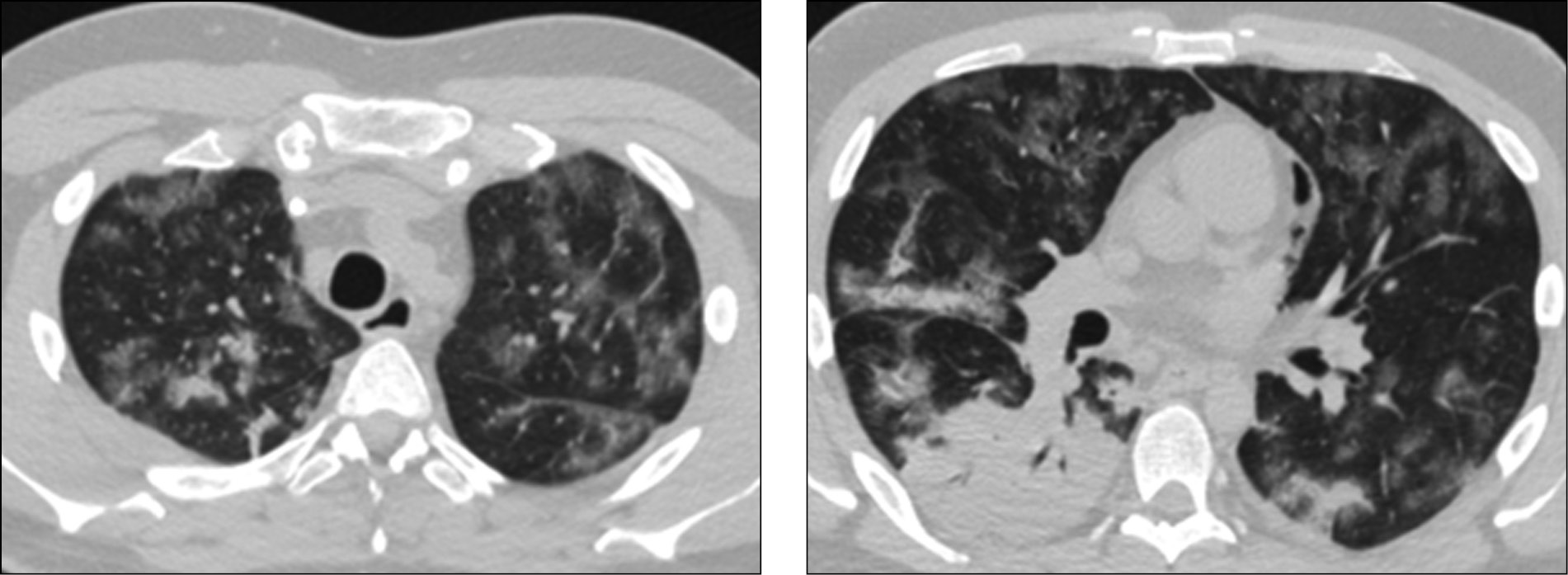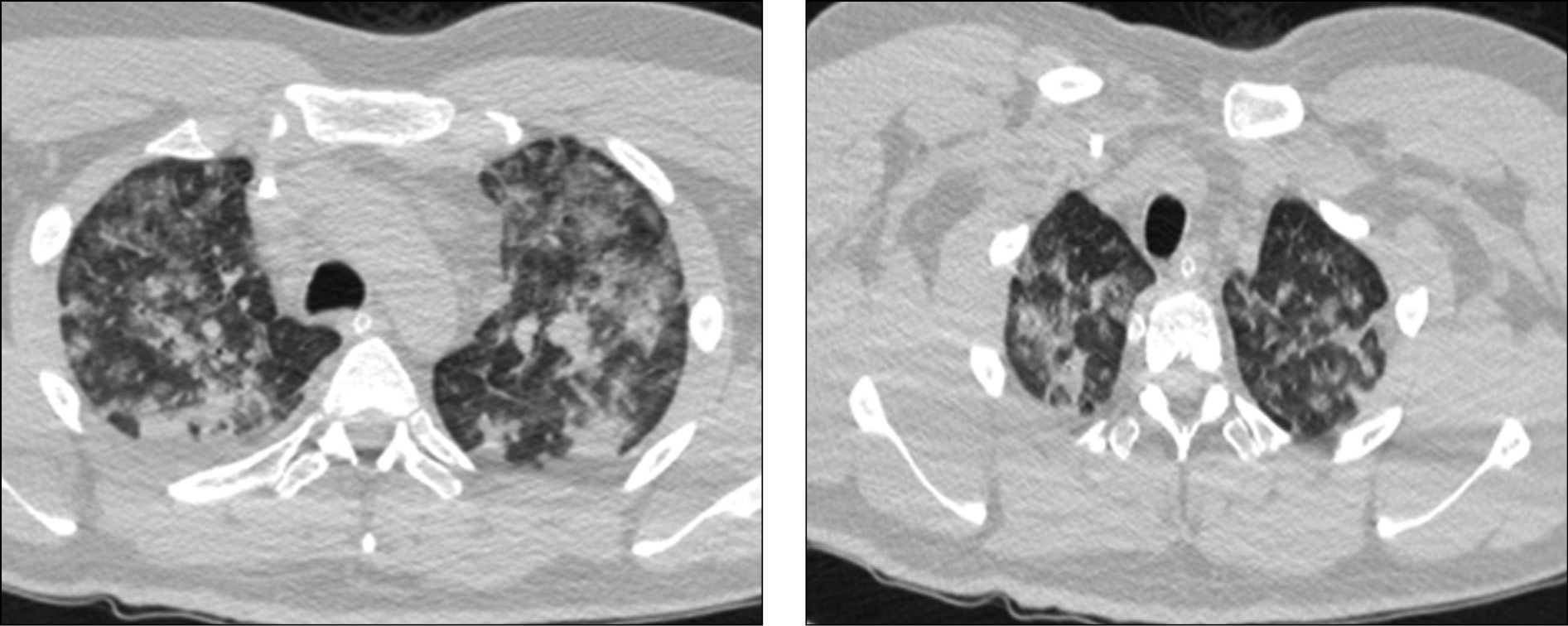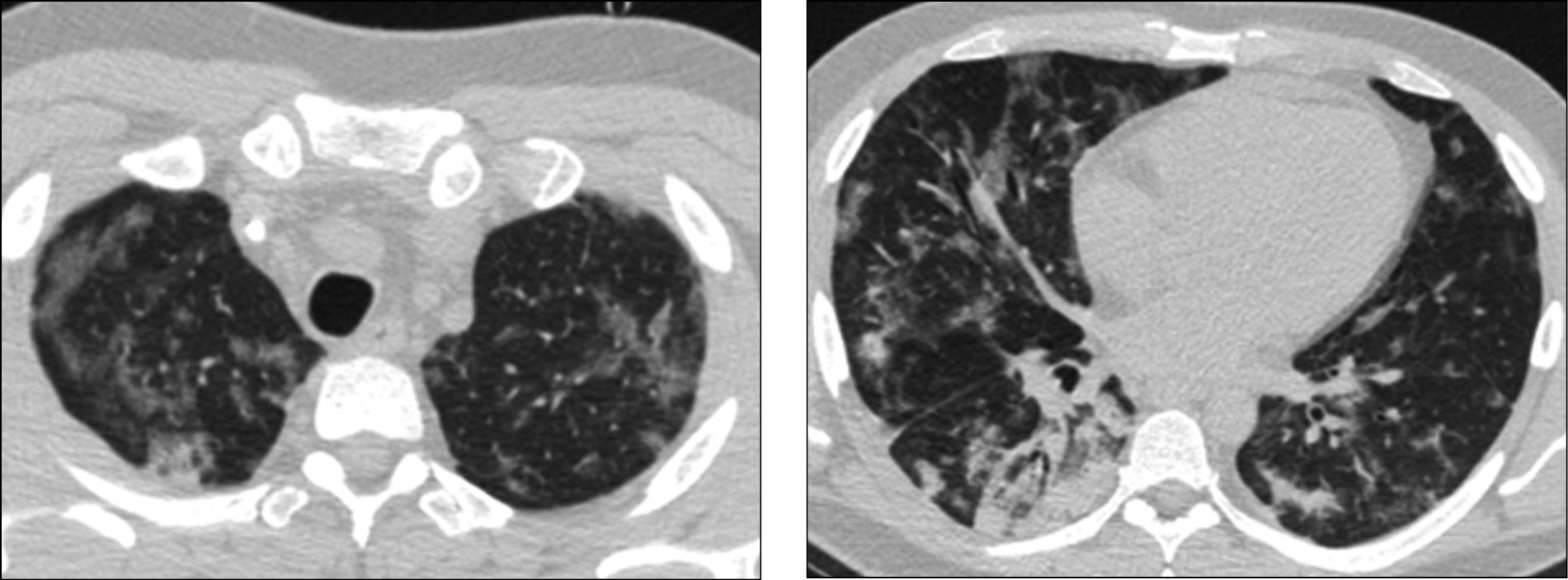Рис. 3. Компьютерная томография легких 02.05.2020: положительная динамика на фоне лечения