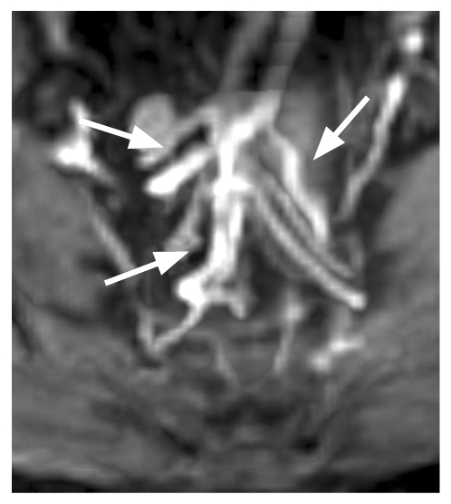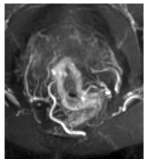 Рис. 7. Артериальная аркада стенки прямой кишки: MIP-реконструкция магнитно-резонансной томографии.