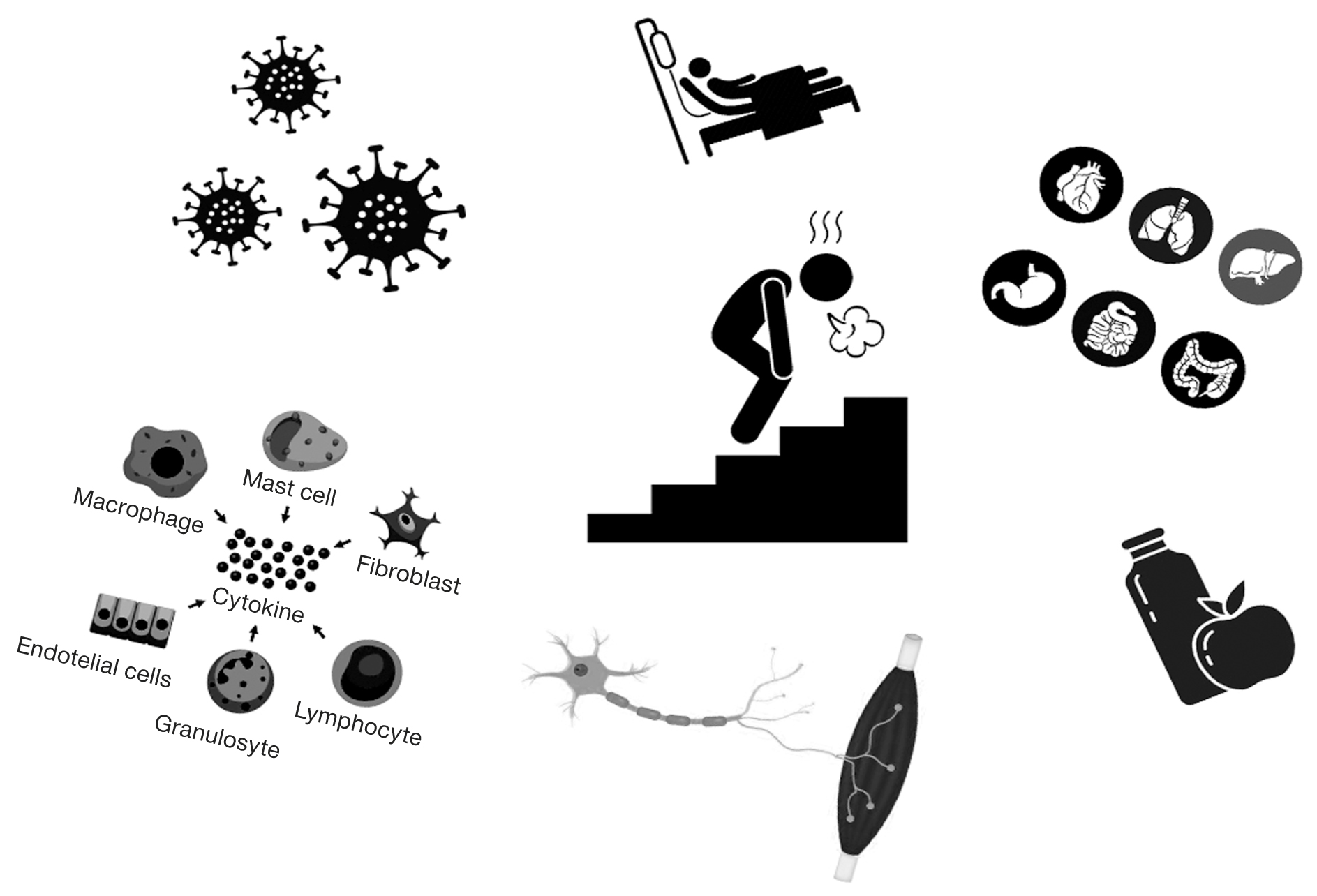 Fig. 1. Multifactorial development of generalized muscle weakness in patients with post-COVID syndrome