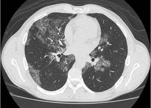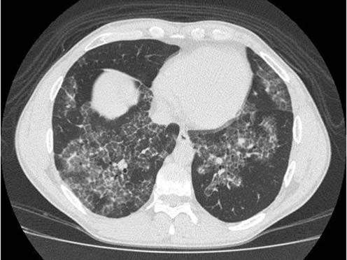 Больной Б., 41 год, с индексом курения 35, пачка/лет, поступил в пульмонологическое отделение в удовлетворительном состоянии в связи с выявленными профилактической флюорографии двухсторонними интерстициальными изменениями.