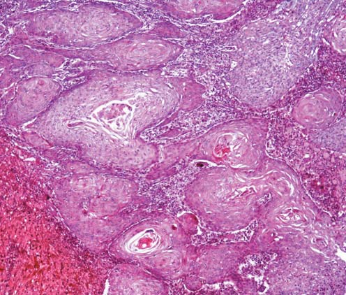 Рис. 4. Плоскоклеточный рак желчного пузыря с ороговением высокой степени дифференцировки.