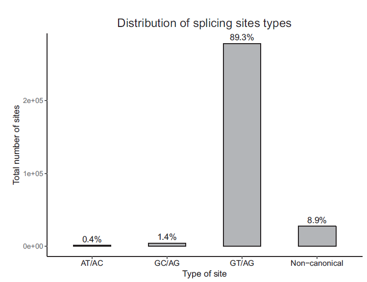 Fig. 3. Distribution of different types of splice sites in the pea nodule transcriptome