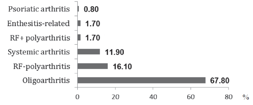 Fig. 1. The columns show the patients with different JIA subtypes percentagewise