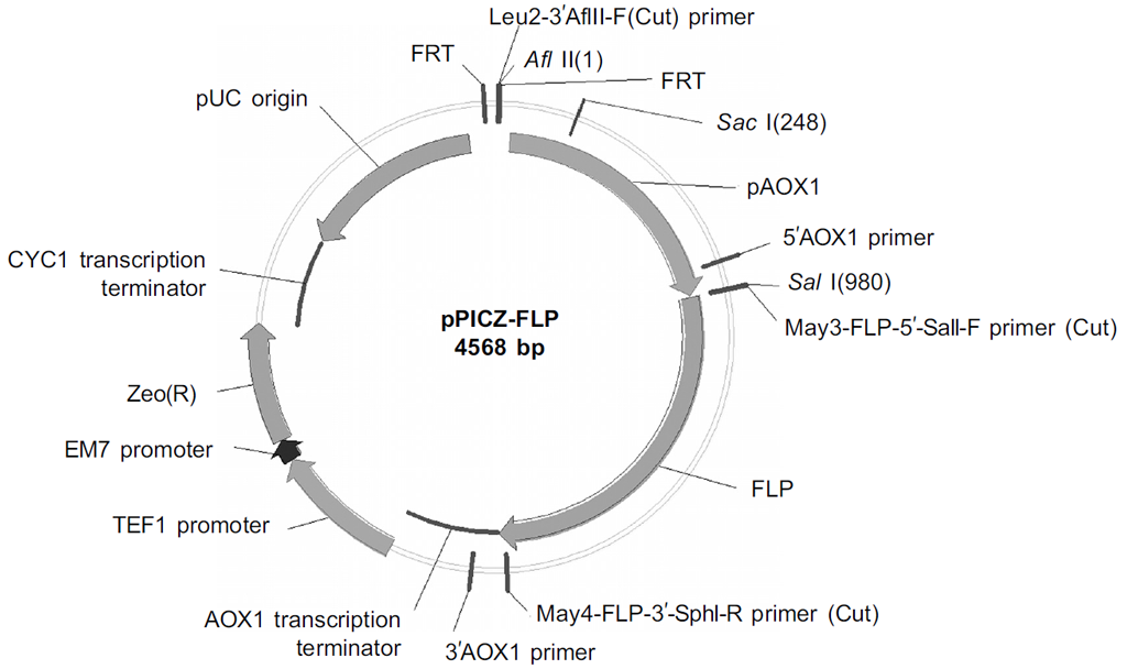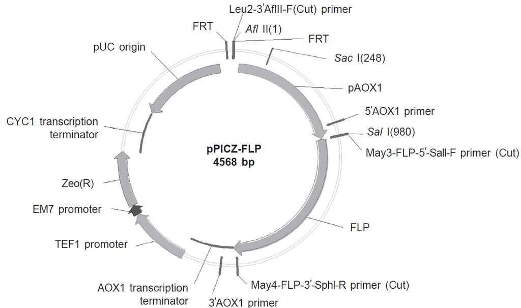 Nucleotide sequence of pPICZ-FLP plasmid: