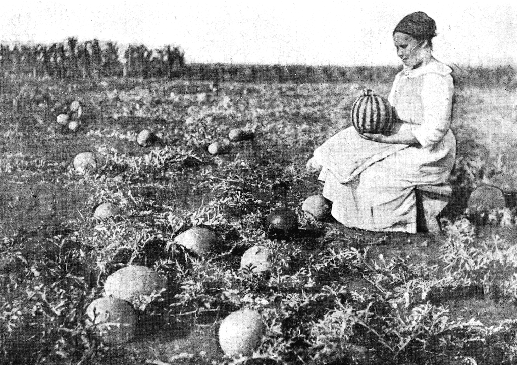 Испытание американских толстокорых арбузов на Степной станции. Отдел селекции. 1920-ые гг.