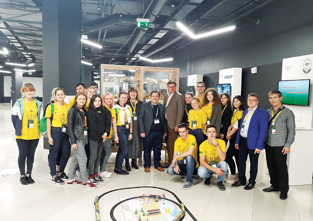Студенты и директор ВИР Е.К. Хлесткина, ректор Адыгейского государственного университета Д.К. Мамий, экс-ректор научно-технологического университета «Сириус» А.И. Рожков. Сочи, образовательный центр «Сириус». 2019.