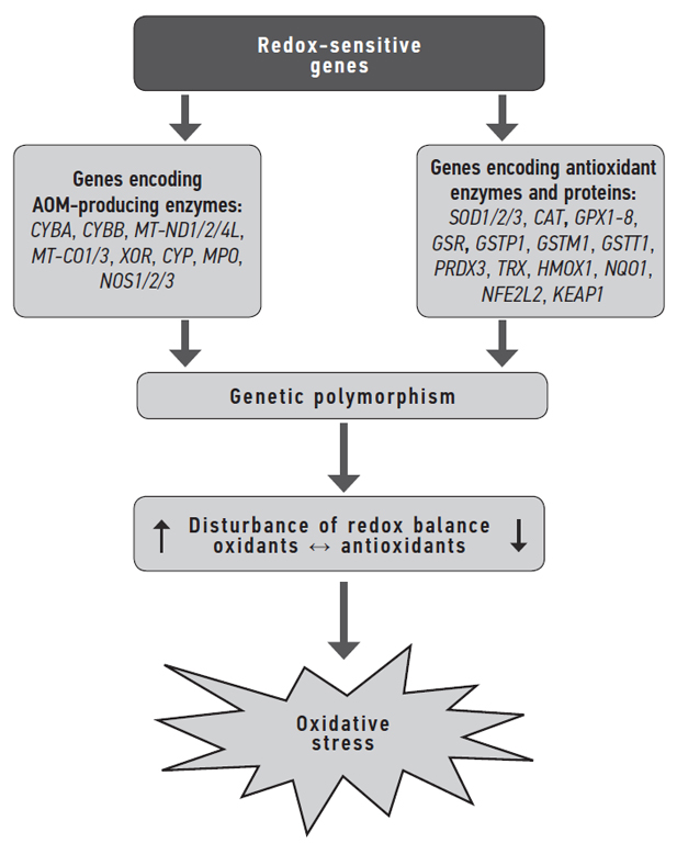 Accordingly, this review aimed to examine the characteristics of the influence of polymorphism of genes of AOM-producing and antioxidant enzymes on changes in the redox balance leading to OS in obesity and concomitant metabolic diseases.