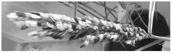 Продолжительность вегетационного периода донорных образцов была на 30–35 дней больше, чем у сорта Боярин, поэтому межподвидовые гибриды F1 характеризовались продолжительным вегетационным периодом и значительной стерильностью колосков (91–95 %) (рис. 1).