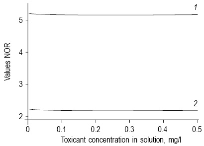 Where С is the concentration of lead ions in the medium (mg/L) and NOR is the value of the factor of functional activity of the nucleolar organizer.