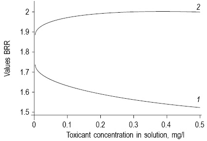 Where С is the concentration of lead ions in the medium (mg/L); BRR is the value of the factor of functional activity of the Balbiani ring.