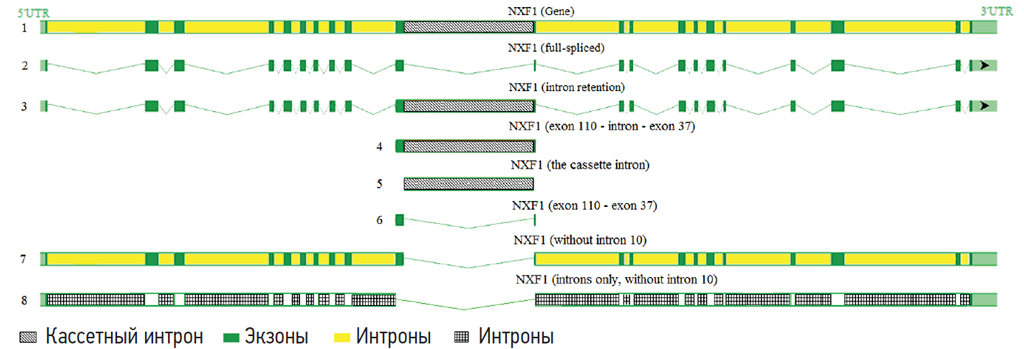 С учетом известной интрон-экзонной структуры последовательности гена Nxf1 анализировали восемь вариантов последовательностей (рис. 1).