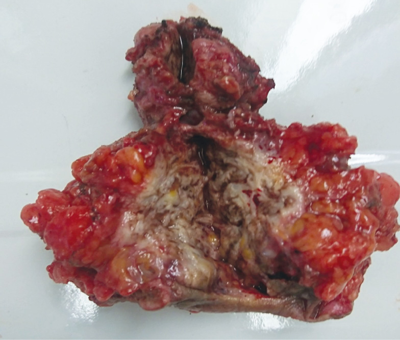 Fig. 3. The removed node of the postoperative scar endometriosis with a cystic-solid structure