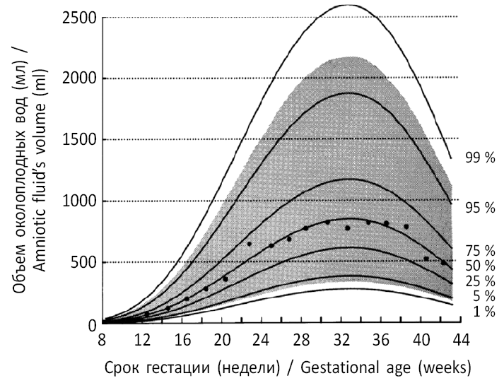 Рис. 1. Динамика объема околоплодных вод в течение беременности [10]