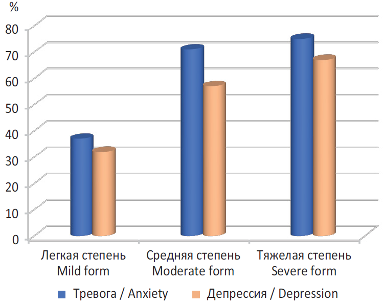 Fig. 2. Levels of anxiety and depression, depending on the severity of menopausal syndrome