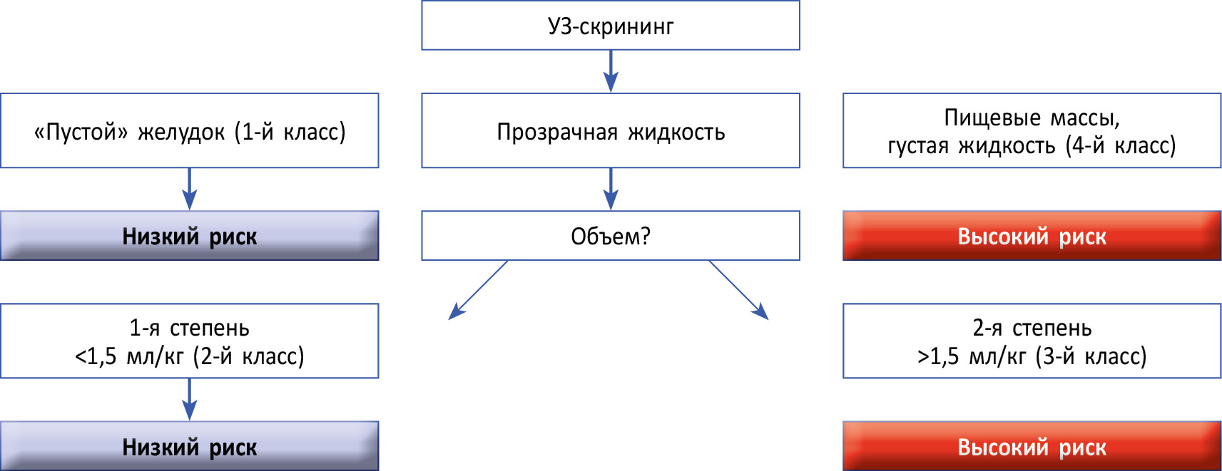 Рис. 1. Алгоритм ультразвуковой оценки риска регургитации и аспирации