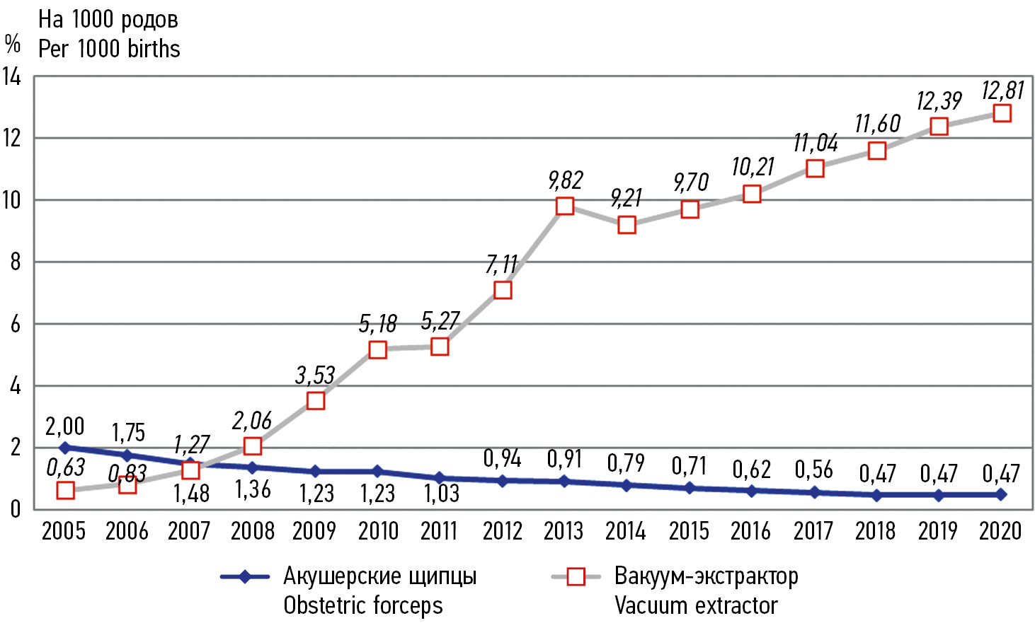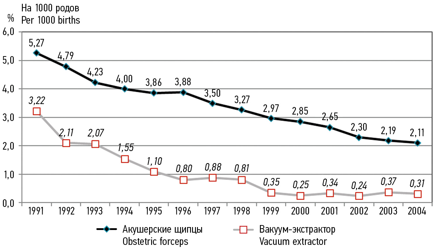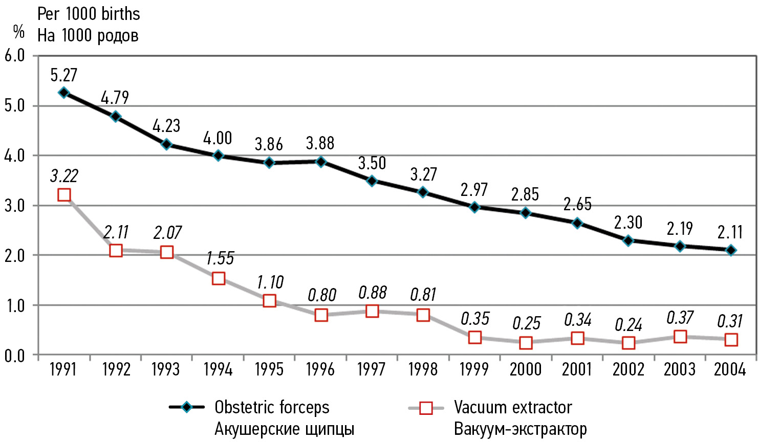 Over the past 30 years, obstetrics has changed and become more aggressive while changing the mentality of obstetricians and gynecologists. This situation has raised a number of concerns for the obstetric society, the main one being the role and position of the cesarean section in modern obstetrics. Currently, operative delivery is an integral part of obstetric practice, and an increase in the frequency of such interventions has been observed worldwide. In Western Europe, the number of operative vaginal deliveries (fetal vacuum extractions and obstetric forceps) increases with an increase in the frequency of cesarean sections. However, most obstetricians in Russia associate operative deliveries only with cesarean section.