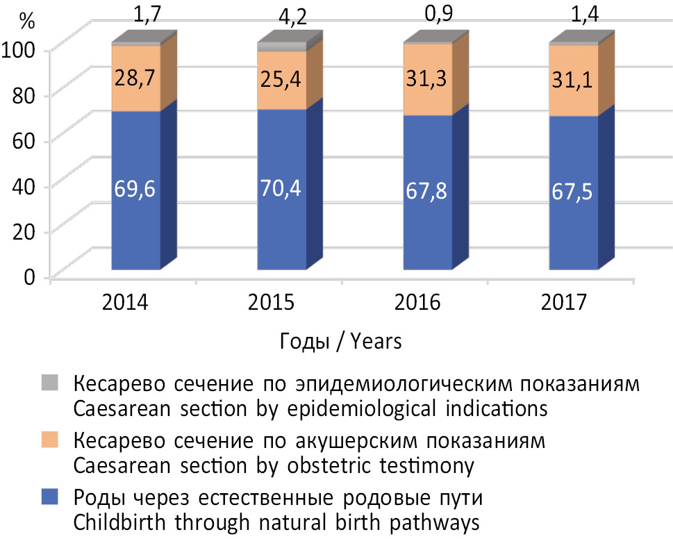 It has been established that most HIV-infected pregnant women visit a WCC and AC in trimester I of pregnancy. From 2014 to 2017, the number of new HIV-infected women who registered at the WCC during their first visit due to pregnancy decreased by half. The proportion of women who were co-infected with chronic viral hepatitis C is gradually decreasing due to a decrease in the number of cases of infection by the parenteral route. By 2017, a decrease in the incidence of anemia in HIV-infected pregnant women was noted. Every year, the number of women who become pregnant while under ARVT treatment and who have an undetectable level of HIV viral load increases by 7.5%, which has led to a decrease in the probability of perinatal infection to a minimum level. The initiation of ARVT before pregnancy favorably affects the average level of CD4 lymphocytes and HIV RNA at the initial examination during pregnancy and before childbirth. The main method of delivery for HIV-infected pregnant women is vaginal delivery. Cesarean section for various indications is performed in one-third of cases, which is higher than that performed at the population level. The frequency of preterm births in HIV-infected women, which is one of the factors that increases the risk of perinatal transmission of HIV, is 4–5 times higher than that in the general population.