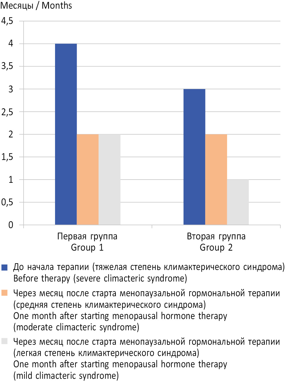 Рис. 1. Динамика климактерического синдрома тяжелой степени через месяц после начала менопаузальной гормональной терапии